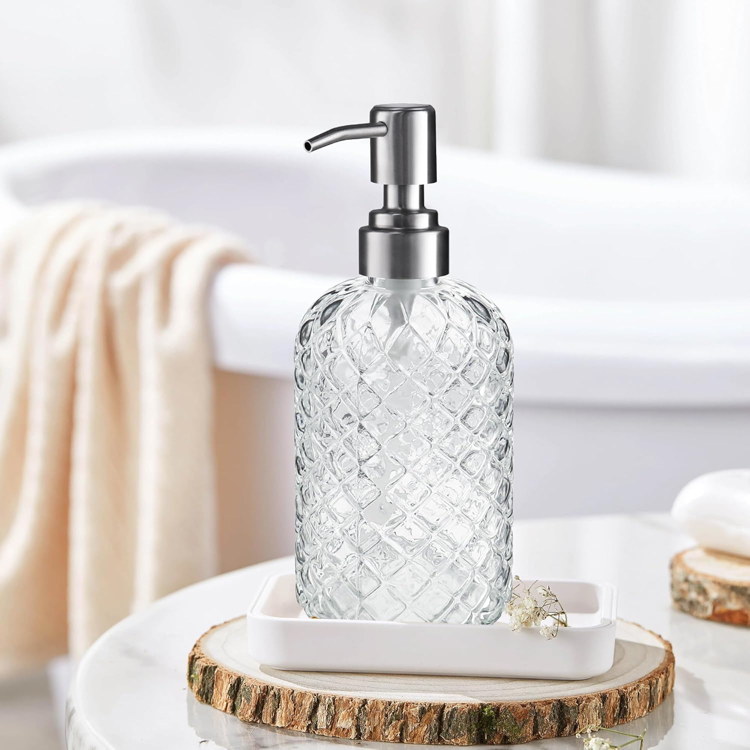 12 reviews for 14 Oz Refillable Glass Soap Dispenser with Rust Proof Stainless Steel Pump, for Dispense Hand soap, Body wash, Lotion